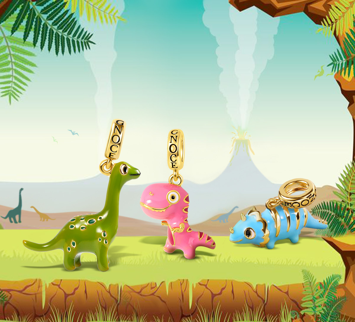 เชิญชวนผู้รักไดโนเสาร์และผู้แสวงหาการผจญภัยทุกท่าน! คอลเลกชัน Dinosaur Park จาก Gnoce นำเสนอเครื่องประดับสุดน่ารักที่ได้รับแรงบันดาลใจจากยุคก่อนประวัติศาสตร์ เปี่ยมไปด้วยเสน่ห์ ตั้งแต่ต่างหู T-Rex สุดดุดันไปจนถึงจี้รูปไทรเซอราทอปส์สุดน่ารัก ชิ้นงานเหล่านี้ทั้งสนุกสนานและมีสไตล์ ไม่ว่าคุณจะเป็นแฟนพันธุ์แท้ฟอสซิลหรือแค่หลงใหลในความน่ารักแบบยุคจูราสสิก คอลเลกชันนี้จะช่วยเพิ่มความโดดเด่นให้กับชุดของคุณได้อย่างลงตัว