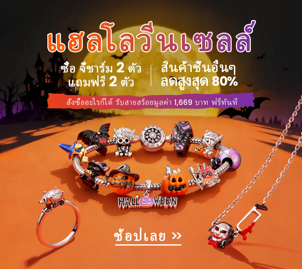 วันฮาโลวีน • ซื้อ 2 แถม 2 ฟรี ใช้ได้กับทุก จี้ชาร์ม